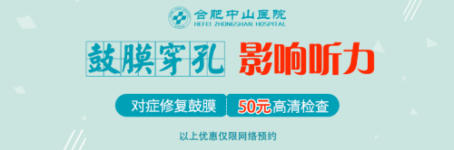 根据病因不同,治疗方法不同。如是感染因素引起的鼓膜穿孔,需抗感染治疗。检查治疗需要选择正规医院的耳鼻喉科。合肥中山医院耳鼻喉科高清耳内窥镜检查鼓膜穿孔病情,透明的检查治疗收费,网络在线预约享优惠!
